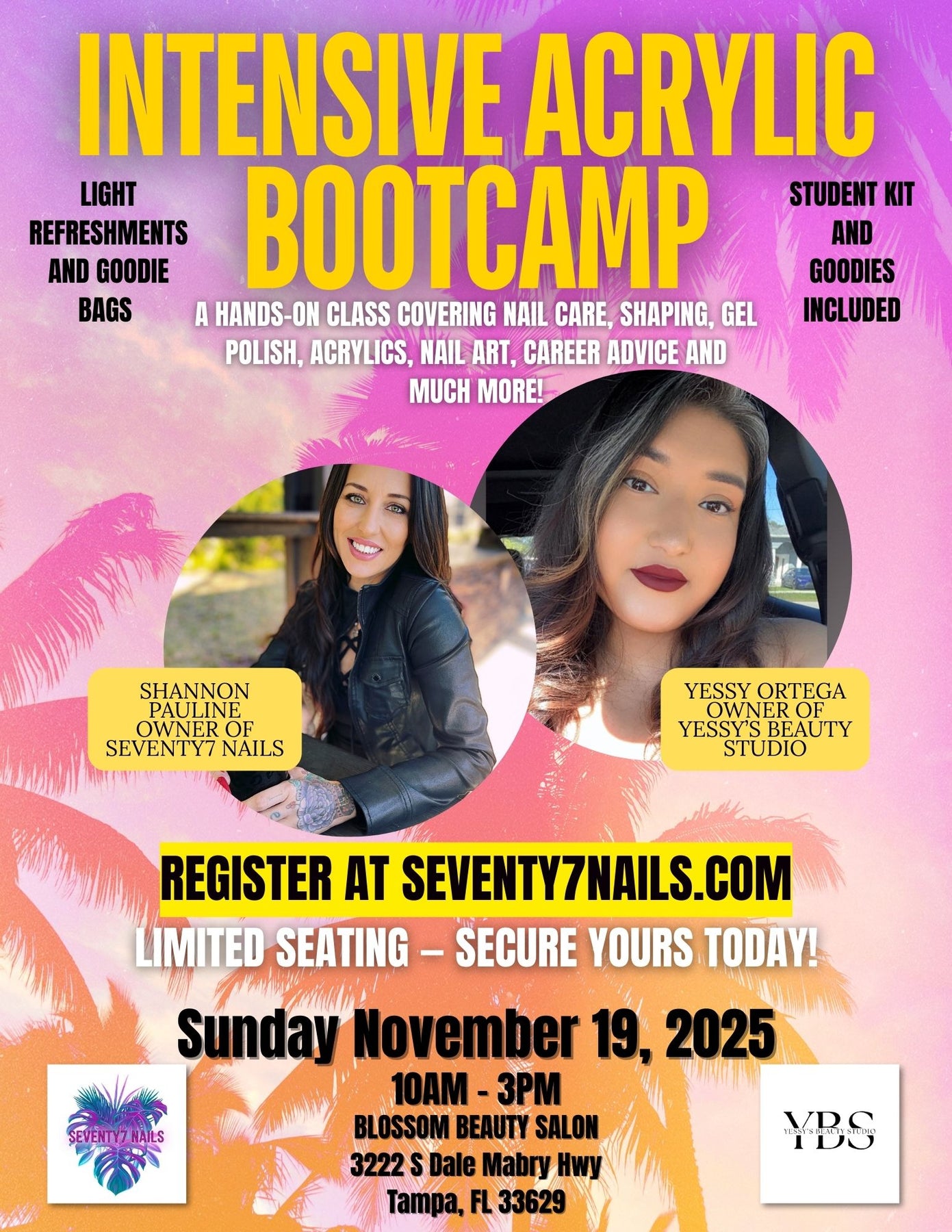 Aprende a hacer sets de acrílico impecables con rapidez y control — todo en un solo día intensivo. Este taller práctico está diseñado para que domines las técnicas esenciales del acrílico: preparación, proporciones, estructura y cómo terminar un set completo con confianza. Trabajarás directamente en tu modelo, aprenderás técnicas modernas de salón y recibirás tu certificado de finalización.