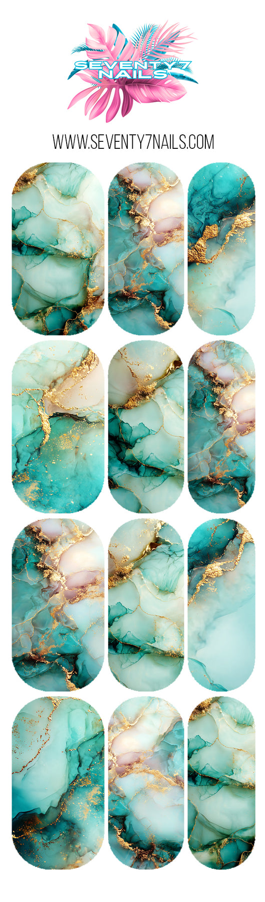 Waterslide Nail Decals - Teal Gold Marble - Seventy7 Nail Decals